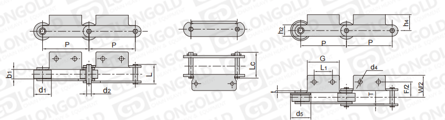 鏈條節(jié)距為非標(biāo)規(guī)格,需要安裝特定的附件,以用于物料的輸送。