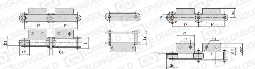鏈條節(jié)距為非標(biāo)規(guī)格,需要安裝特定的附件,以用于物料的輸送。