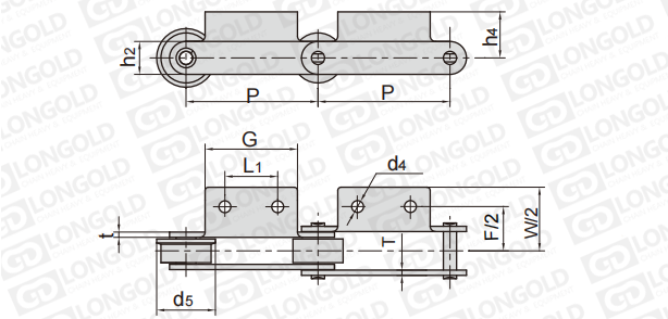 鏈條節(jié)距為非標(biāo)規(guī)格,需要安裝特定的附件,以用于物料的輸送。