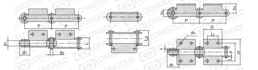 鏈條節(jié)距為非標(biāo)規(guī)格,需要安裝特定的附件,以用于物料的輸送。