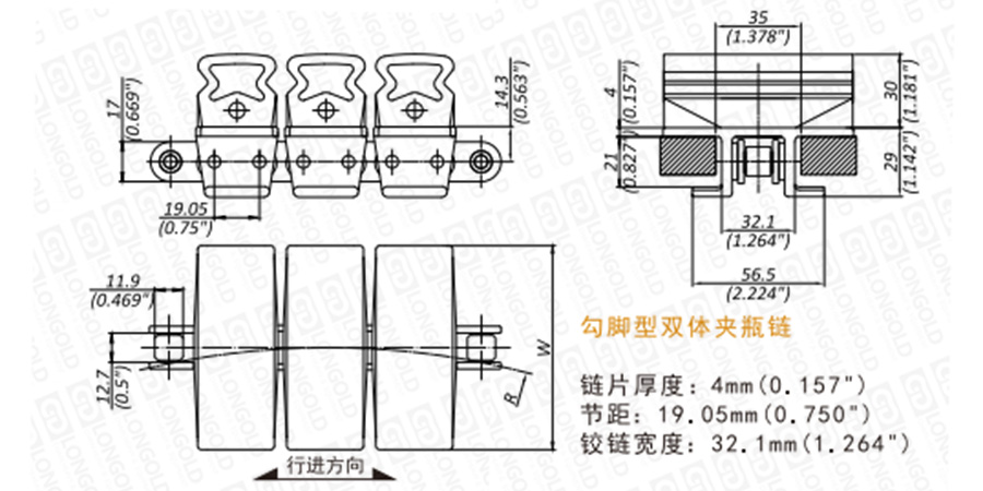 上圖為L(zhǎng)DGD1873T系列雙體鏈的結(jié)構(gòu)圖,圖紙已標(biāo)明本體尺寸。