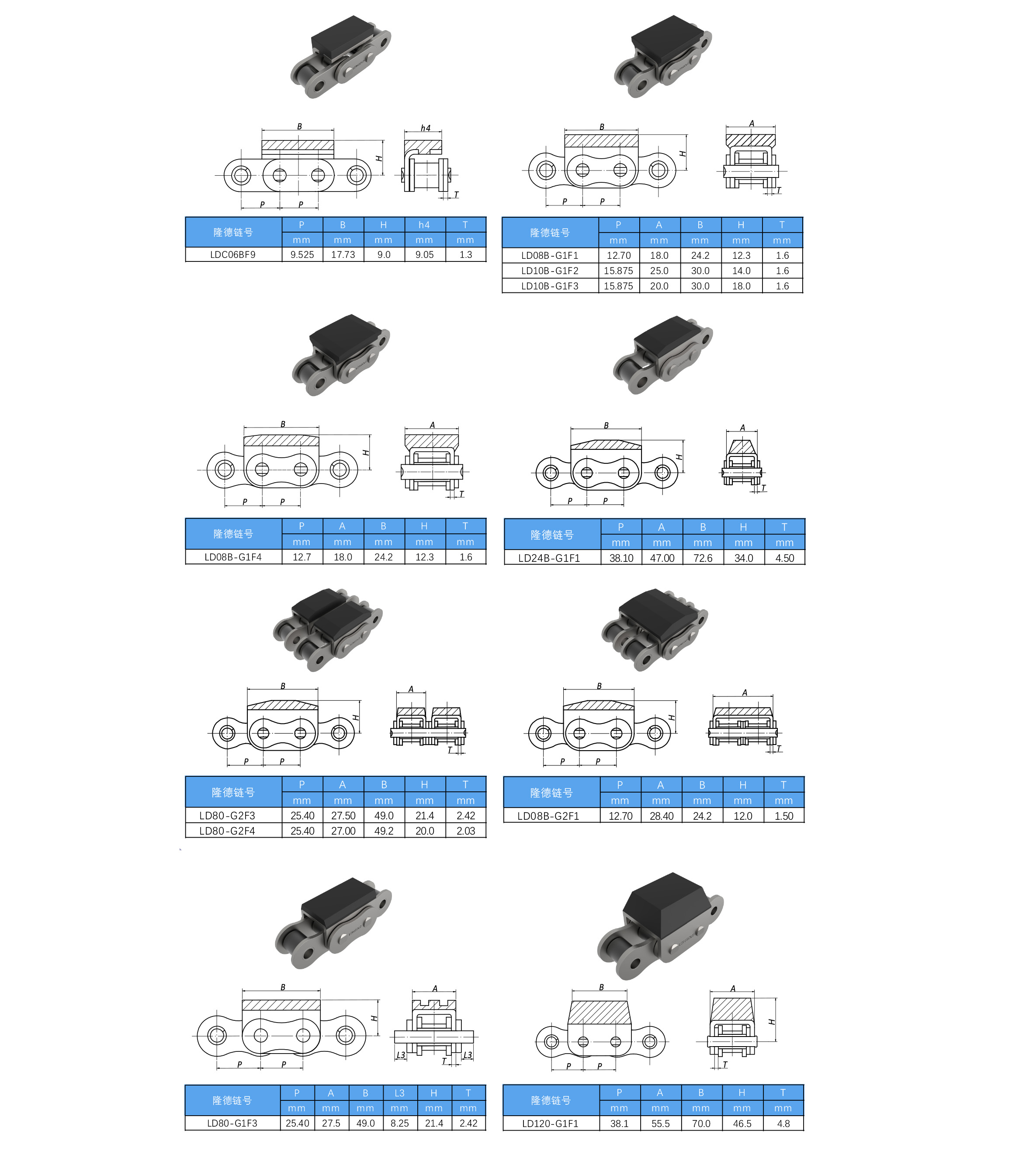 本體鏈條可為A系列或者B系列單雙排直板或者"∞"字板鏈條。