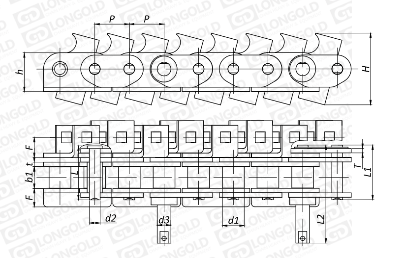 此類型鏈條是在標準短節(jié)距精密滾子鏈作為基鏈的基礎上加裝特殊附件的鏈條。