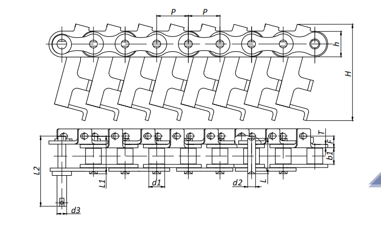 附件可配裝在每一個鏈節(jié)以上的鏈節(jié)間隔,如每偶數(shù)鏈節(jié)安裝,為了容易進(jìn)行保養(yǎng),安裝在外鏈節(jié)。