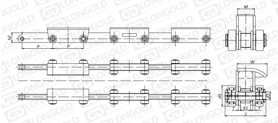 附件是為了將夾具安裝在鏈條上的零部件。可根據(jù)客戶要求設(shè)定安裝間隔。