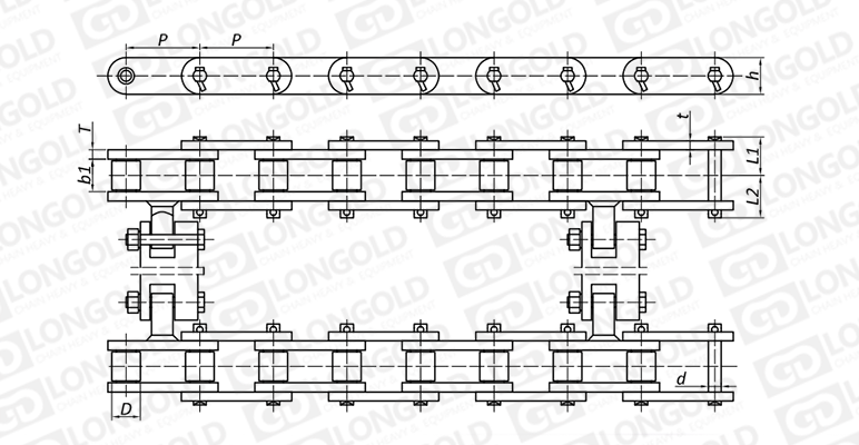 鏈條為雙排結(jié)構(gòu),能大大提升鏈條的承載能力,使鏈條的運(yùn)輸具備更高的穩(wěn)定性。