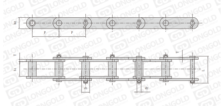 附件可配裝在每一個(gè)鏈節(jié)以上的鏈節(jié)間隔,如每偶數(shù)鏈節(jié)安裝,為了容易進(jìn)行保養(yǎng),安裝在外鏈節(jié)。