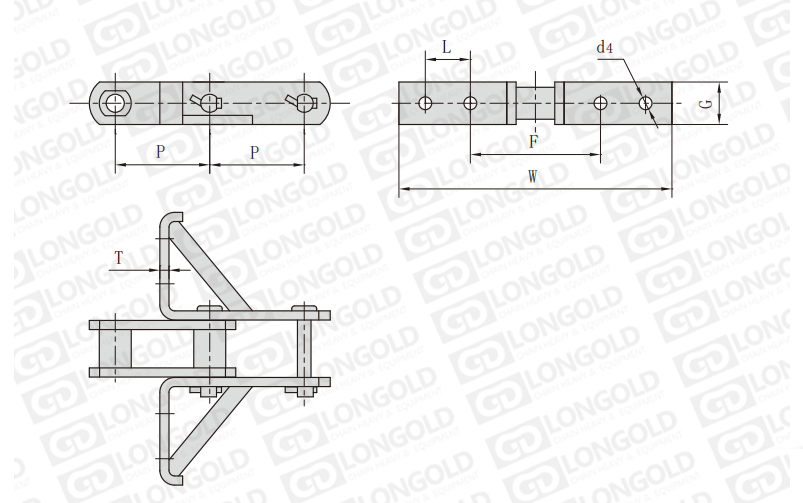 附件是為了將夾具安裝在鏈條上的零部件??筛鶕?jù)客戶要求設(shè)定安裝間隔。