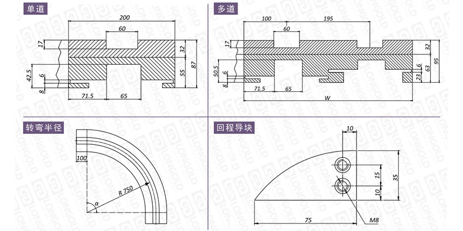 在選擇軌道時,需要考慮安裝尺寸、材質(zhì)性質(zhì)、轉(zhuǎn)彎角度等因素,如有需要,請咨詢隆德技術(shù)人員。
