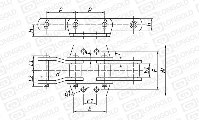 附件是為了將夾具安裝在鏈條上的零部件。可根據(jù)客戶要求設(shè)定安裝間隔。