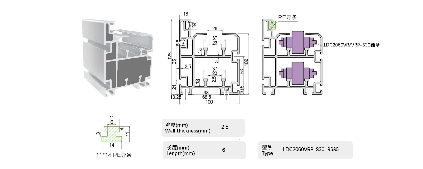 在鋁制框架的輸送側(cè)小直徑滾子部安裝有鋼軌,可用于所有倍速鏈條。