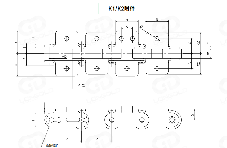 1.()內(nèi)為SS規(guī)格鏈條尺寸。