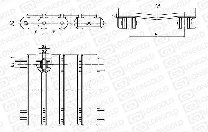 鏈條本體滾子類型有大滾子和帶F型邊滾子,鏈條的節(jié)距多為非標(biāo)節(jié)距。