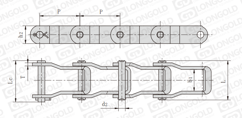 鏈節(jié)由可鍛鑄鐵鑄成并用鋼銷軸連接起來,沒有內(nèi)外鏈節(jié)之分。