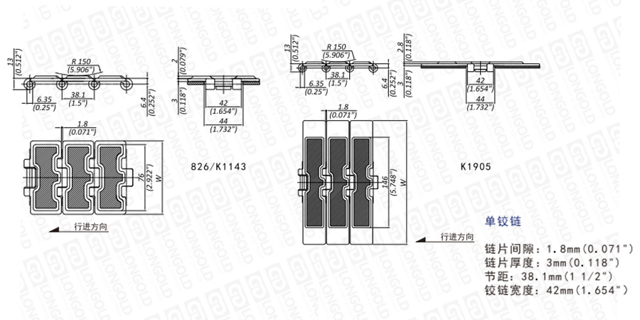 上圖為LDG815系列直行鏈的結(jié)構(gòu)圖,圖紙已標明本體尺寸。
