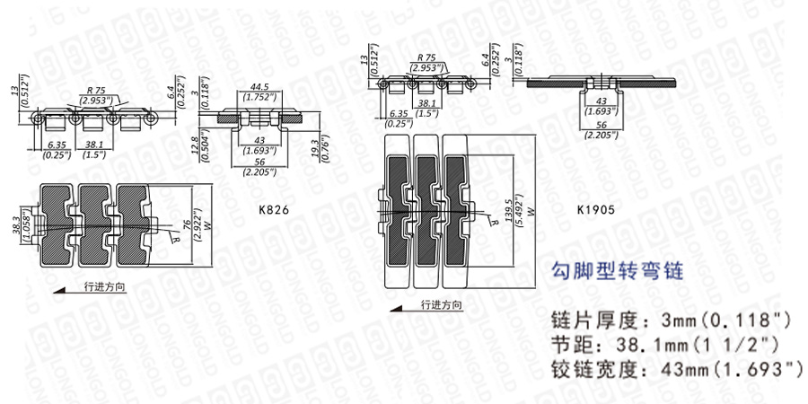 鏈條為勾腳型(帶突舌),型號表示中用“T”表示,卓越的表面光潔度與平整度,優(yōu)質(zhì)的合金鋼材質(zhì)增強了耐磨性與滑動性能。