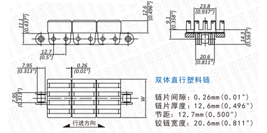 便于更換塑料節(jié),高機(jī)械強(qiáng)度,同單體鏈相比,即便是在負(fù)載條件下頻繁啟動(dòng)同樣可以長(zhǎng)距離傳送并減小拉伸。