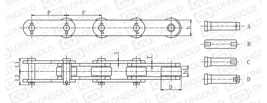 帶“#”標(biāo)記的鏈條為套筒鏈,?滾?,D表示套筒直徑。