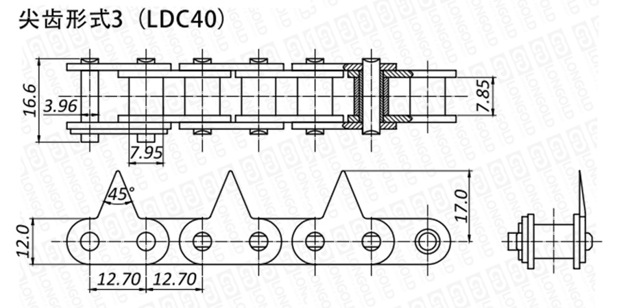 上圖為不銹鋼尖齒鏈III的結(jié)構(gòu)圖。
