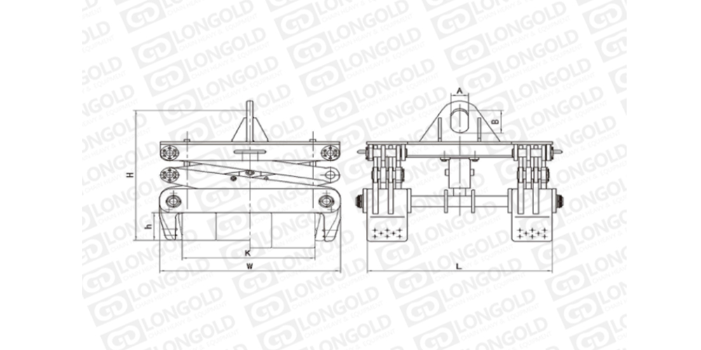 裝車夾鉗是針對鋼坯裝車特殊設計的產(chǎn)品,該夾鉗外形緊湊,吊運過程中,鉗臂擺動幅度小,避免干涉。 夾鉗采用杠桿的工作原理,靠自重夾持鋼坯并鎖緊,開閉機構(gòu)為螺旋往復式,能自動實現(xiàn)鉗口的開閉動作。夾鉗不需要任何動力源,結(jié)構(gòu)簡單合理,動作靈活。各部件的尺寸進行優(yōu)化設計,確保有足夠的夾持力和強度,保證了起運安全可靠性和使用壽命。