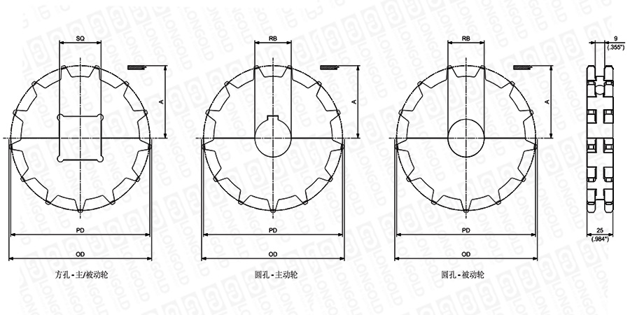 1.圓孔鏈輪表示直徑,方孔鏈輪表示邊長(zhǎng)。