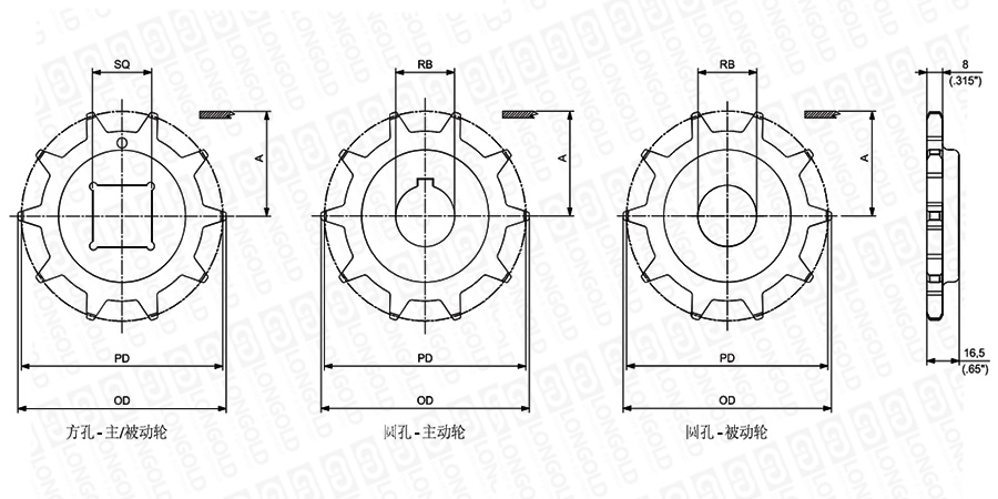 1.圓孔鏈輪孔徑表示直徑。