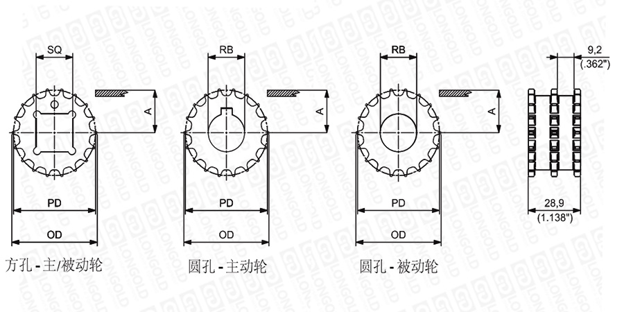 1.圓孔鏈輪表示直徑,方孔鏈輪表示邊長。