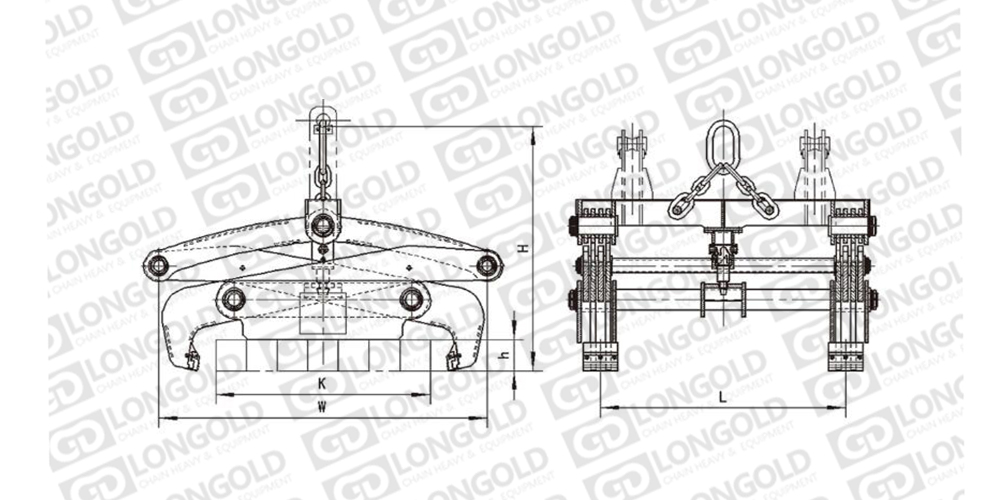 機(jī)械杠桿重力式夾鉗,采用杠桿的工作原理,依靠板(方)坯自重夾持板坯并緊鎖,開閉機(jī)構(gòu)為螺旋往復(fù)式,能自動實(shí)現(xiàn)夾鉗臂的開閉動作,可配置機(jī)械或聲光電指示裝置增加開閉動作可靠性。夾鉗不需要任何動力源,結(jié)構(gòu)簡單合理,動作靈活??蓪?shí)現(xiàn)單塊、多塊板(方)坯的吊運(yùn)。