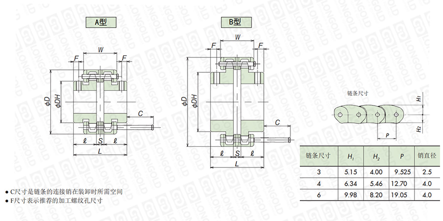 該類鏈條聯(lián)軸器結(jié)構(gòu)緊湊、扭矩傳遞大、可靠性強、安全、而且外形美觀大方、安裝簡單、易對中。如需選購該類型鏈條聯(lián)軸器,請參照型號表里的規(guī)格進(jìn)行訂購。