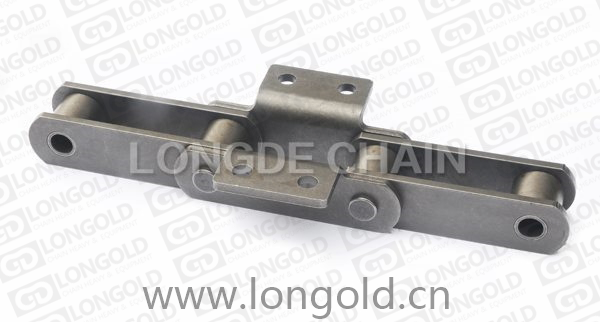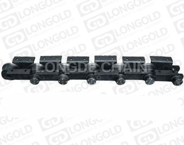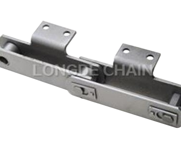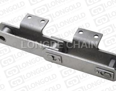 此種輸送鏈是由雙節(jié)距鏈條衍生而來的,鏈條節(jié)距為非常用規(guī)格,通過裝備附件使鏈條滿足特定的工作需求.