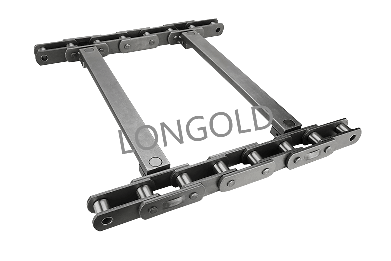刮板輸送鏈通常由一系列剛性的刮板和鏈條組成,刮板固定在鏈條上,用于在料槽內(nèi)移動物料。這種輸送鏈廣泛應(yīng)用于礦業(yè)、建筑、食品加工和制造業(yè)等領(lǐng)域。