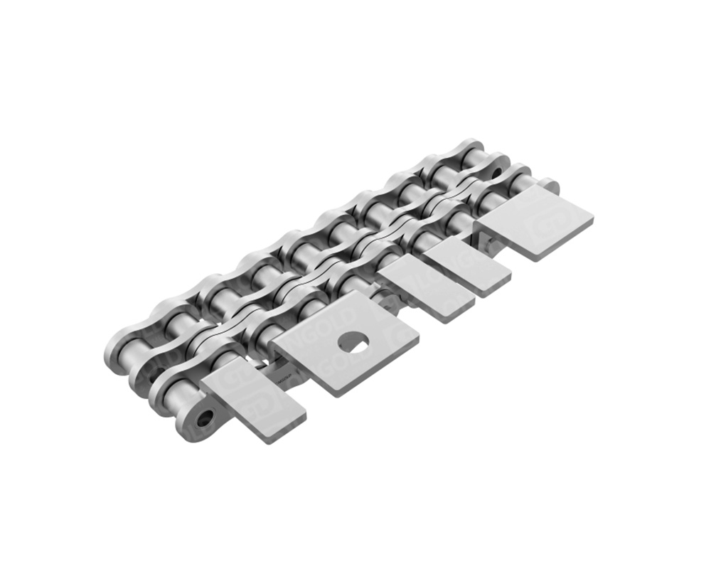 雙排果凍機(jī)鏈,生產(chǎn)果凍裝置的驅(qū)動(dòng)鏈條,參與果凍生產(chǎn)冷卻、凝固、脫模等多個(gè)步驟,鏈條整體采用SUS304不銹鋼材質(zhì),在果凍生產(chǎn)環(huán)境中,能夠有效抵御水汽、糖分以及各種清潔消毒劑的侵蝕