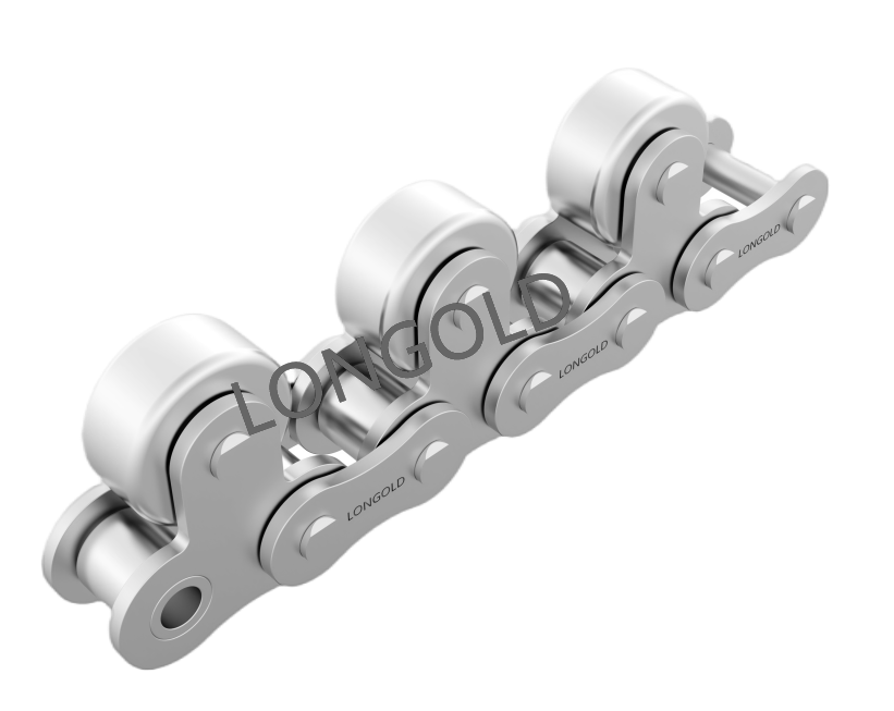帶頂置滾輪輸送鏈設(shè)計用于在輸送系統(tǒng)中提供平穩(wěn)的物料搬運,頂置滾輪有助于減少摩擦,特別是在需要鏈條在特定角度或方向上移動的應(yīng)用中。