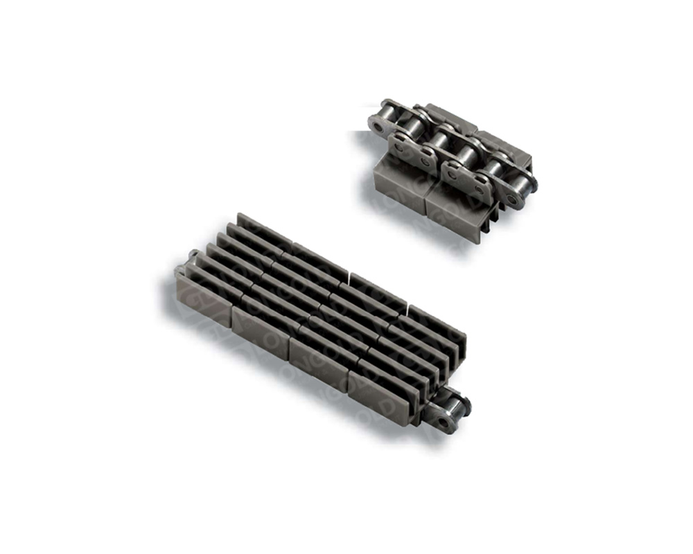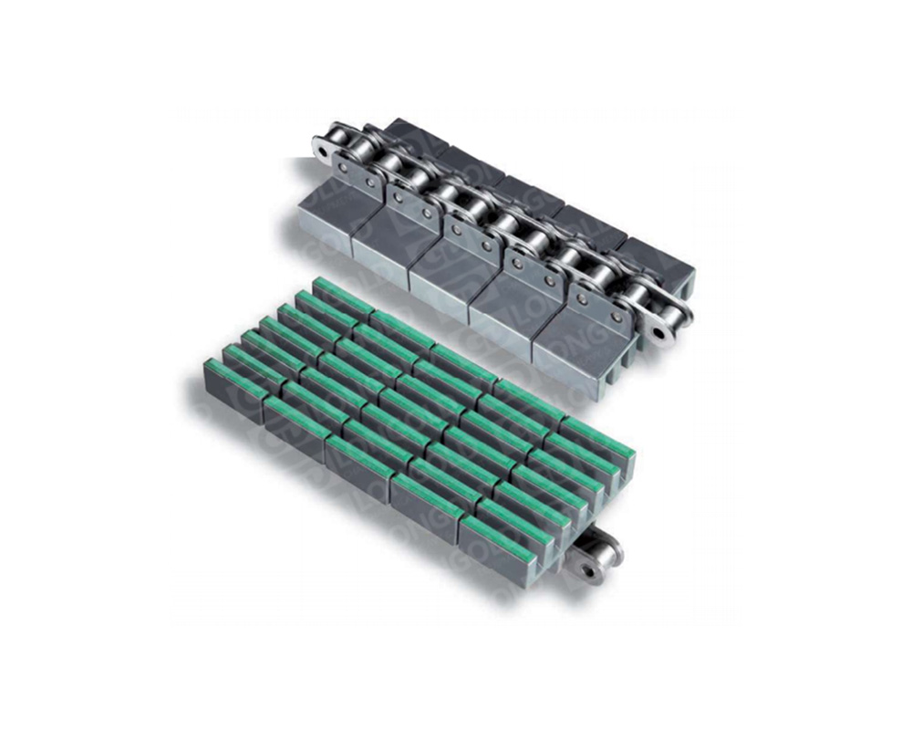 雙體鏈便于更換塑料節(jié),高機(jī)械強(qiáng)度,同單體鏈相比,即便是在負(fù)載條件下頻繁啟動(dòng)同樣可以長(zhǎng)距離傳送并減小拉伸。HFRR845系列為頂板帶橡膠墊的雙體直行塑料鏈條,鏈條節(jié)距為12.7毫米。 鏈條為凸肋型,適合與過渡梳子板配套使用