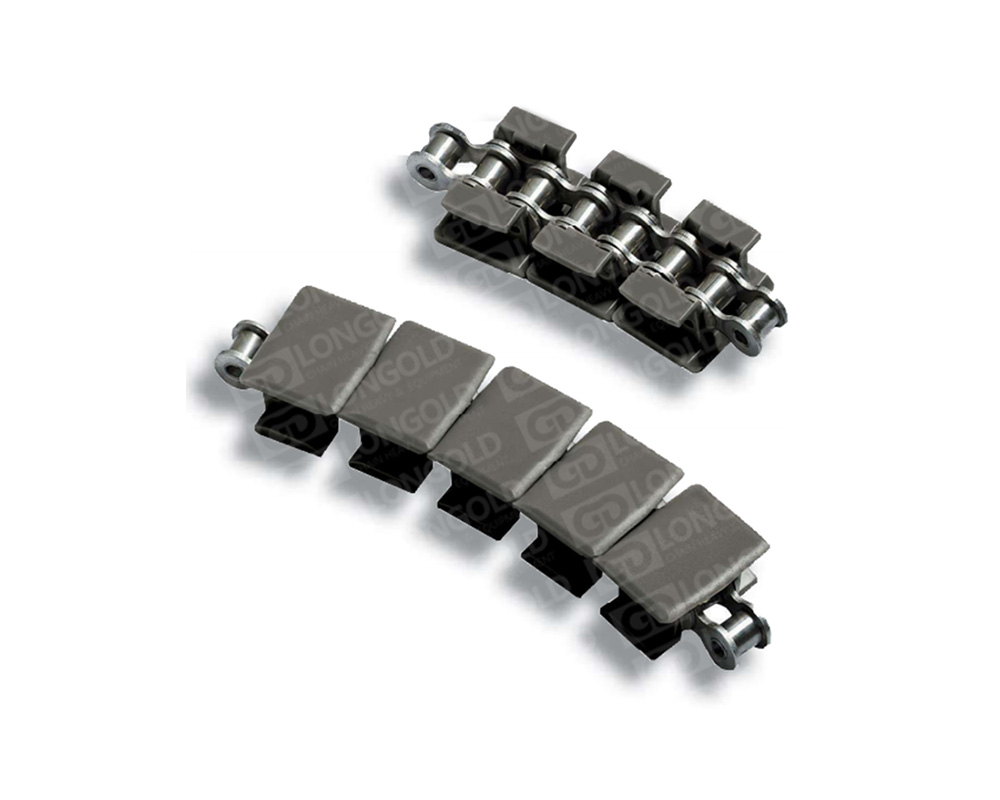 雙體頂板鏈?zhǔn)且环N特殊設(shè)計(jì)的鏈條,它的特點(diǎn)是具有兩個(gè)并行的頂板鏈,可以提供更寬的輸送表面和更高的承載能力。通常用于需要同時(shí)承載多個(gè)物品或較重物品的輸送系統(tǒng)。