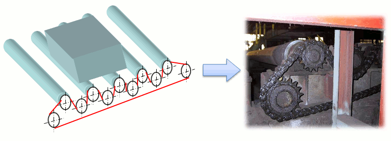 在鋼鐵設(shè)備,軋鋼滾筒輸送機的各滾筒的多軸驅(qū)動用途